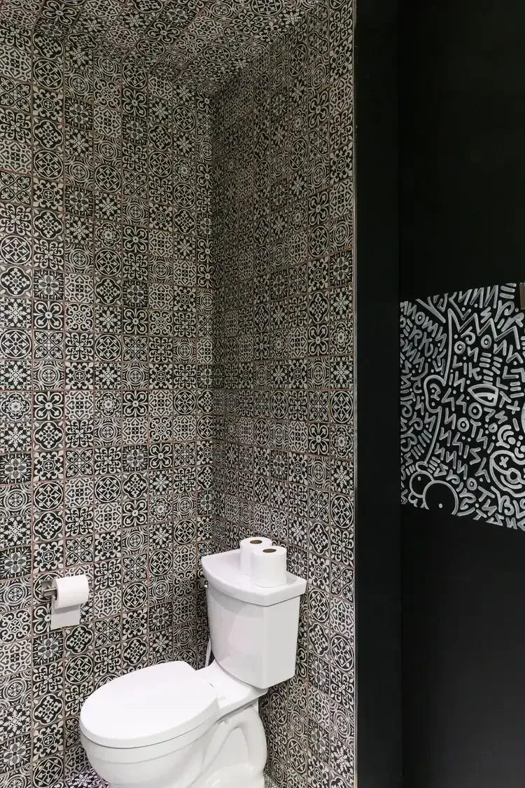 The bar is articulated by a raw copper ceiling; a material we reflected in the stools as well. Throughout the rest of the space, we assembled a combination of new and vintage furniture to create an atmosphere that is both warm and eclectic.